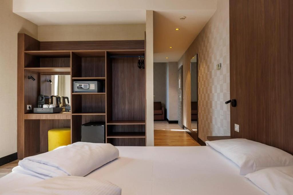 Удобства в номерах: Сейф, Отопление, Кондиционер, Обслуживание в номерах, Терраса, Фен, Телевизор, Мини-бар, Телефон, Душ