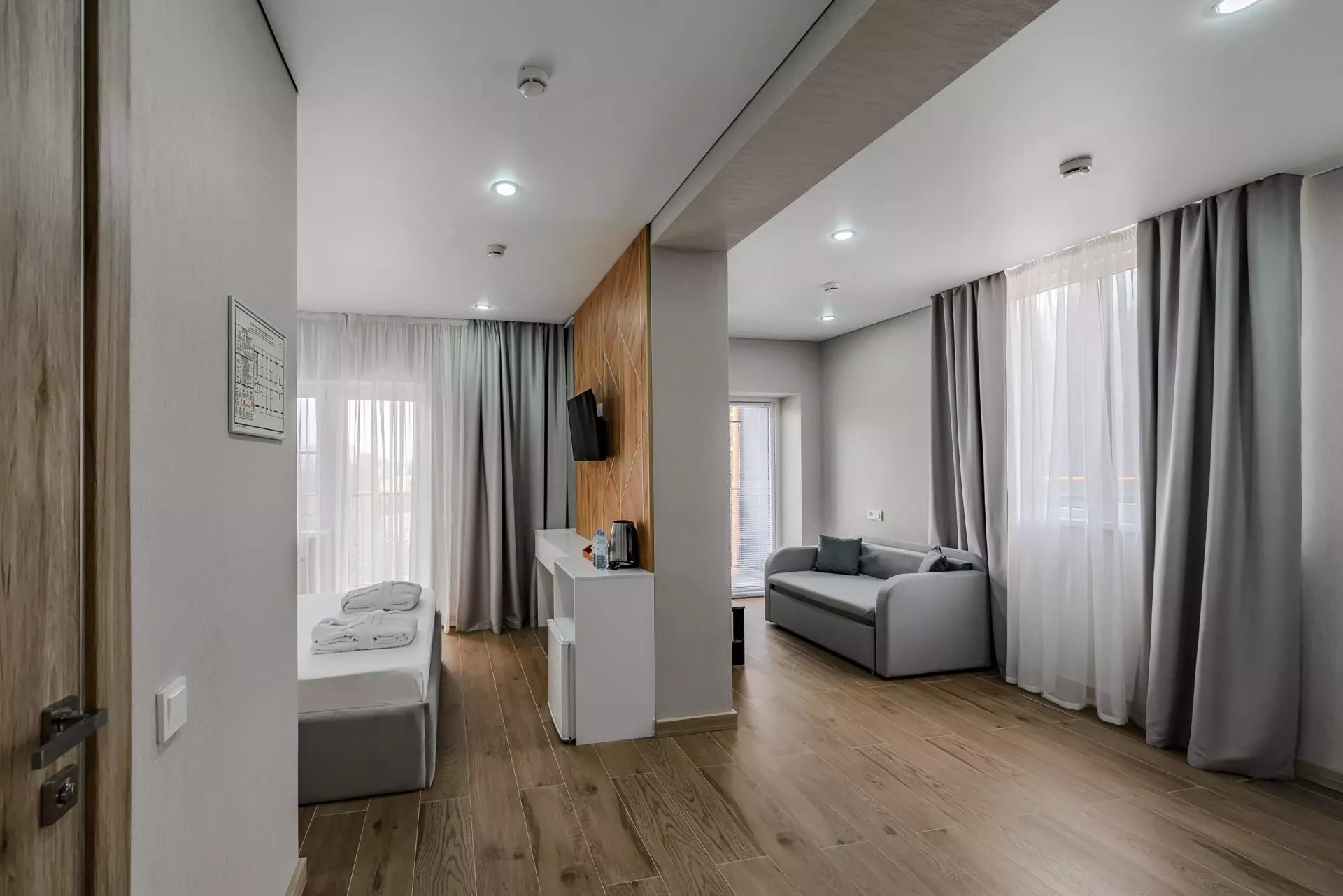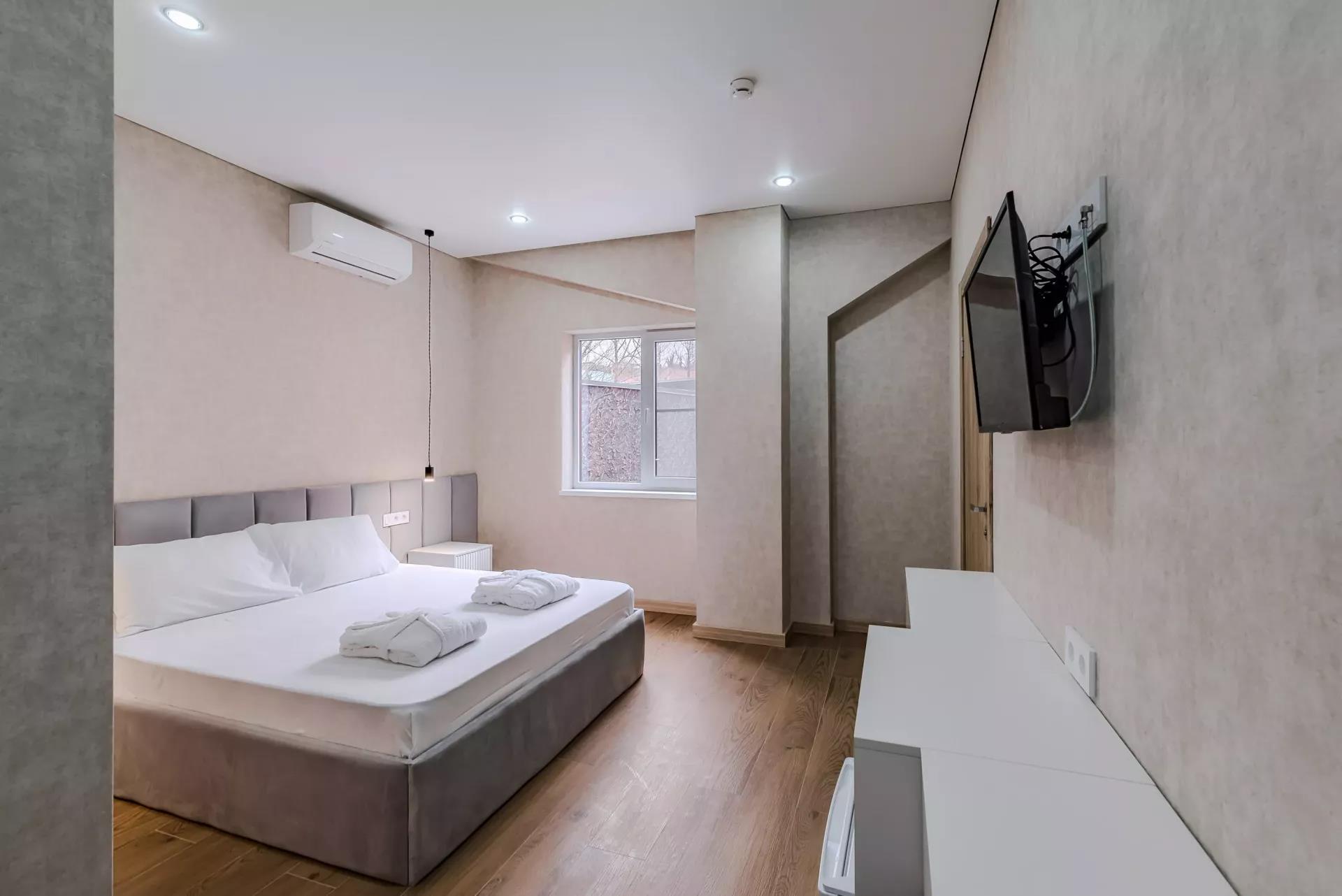 Удобства в номерах: Сейф, Отопление, Кондиционер, Фен, Телевизор, Холодильник, Душ