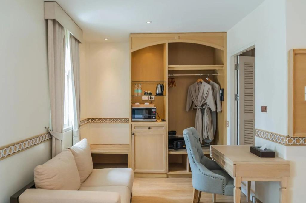 Удобства в номерах: Сейф, Кондиционер, Обслуживание в номерах, Терраса, Фен, Телевизор, Холодильник, Мини-бар, Телефон, Душ, Кухня