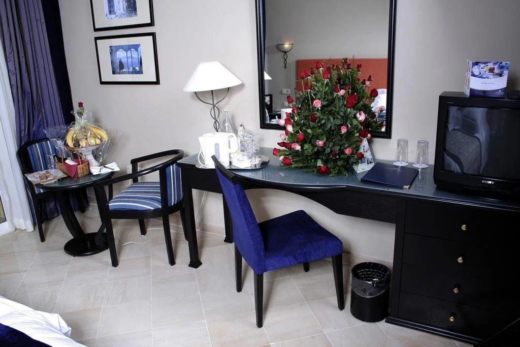 Удобства в номерах: Сейф, Отопление, Кондиционер, Обслуживание в номерах, Терраса, Фен, Телевизор, Мини-бар, Телефон, Кухня