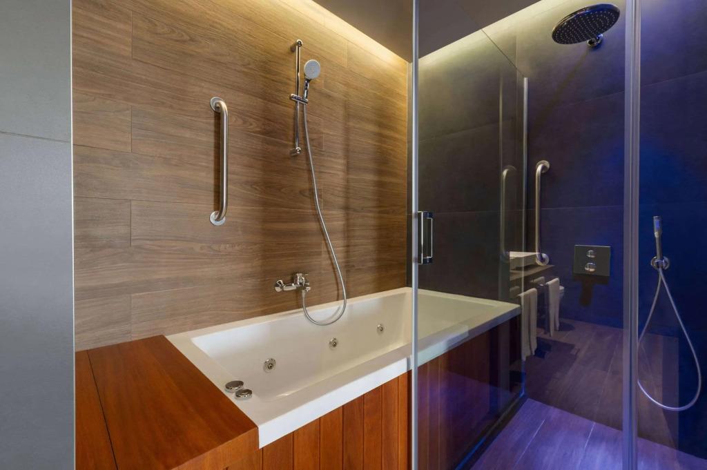 Удобства в номерах: Сейф, Кондиционер, Телевизор, Мини-бар, Телефон, Душ