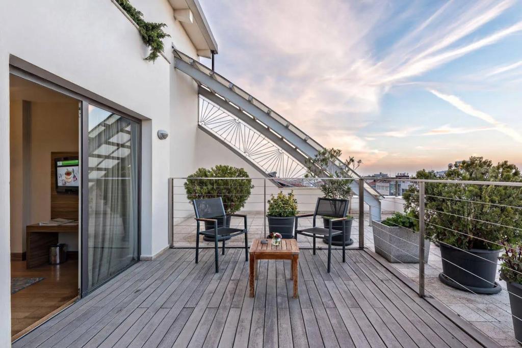 Удобства в номерах: Сейф, Отопление, Кондиционер, Обслуживание в номерах, Терраса, Фен, Телевизор, Холодильник, Мини-бар, Телефон, Душ