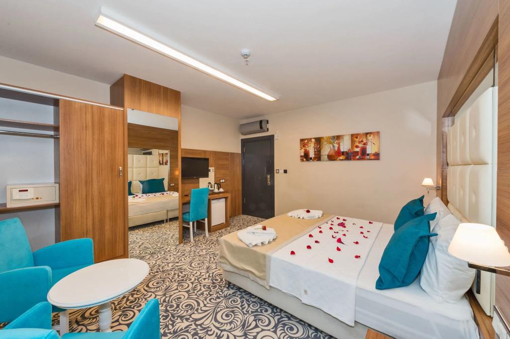 Отель Business Life Hotel Gunesli располагает продуманной инфраструктурой. Внутренний комфорт полностью соответствует категории Без категории. Здесь досконально позаботятся обо всем: о вашем разнообразном питании, о послеобеденном отдыхе в прохладе кондиционера, о чистоте и уюте. Прилегающая территория тщательно ухожена и безопасна. Есть места для спорта и детских игр. Принимающая сторона позаботилась и о вечерних развлечениях. Но в любой момент вы можете посетить другие дискотеки и бары за пределами отеля.