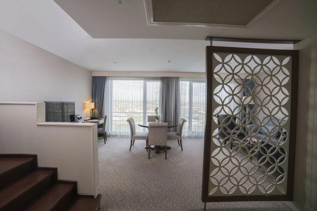 Выбирая Miracle Istanbul Asia Airport Hotel & Spa категории 5*, вы получаете все привилегии гостя. К вашим услугам благоустроенная территория, включающая бассейн и детский уголок, удобные и безопасные прогулочные зоны. Даже не выбираясь за пределы отеля, вы сможете прекрасно провести время, наслаждаясь роскошной южной природой и участвуя в развлекательной программе отеля.