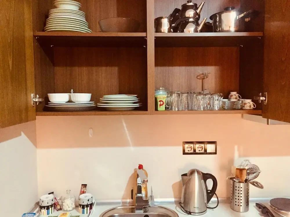 Удобства в номерах: Сейф, Кондиционер, Телевизор, Холодильник, Телефон, Душ, Кухня